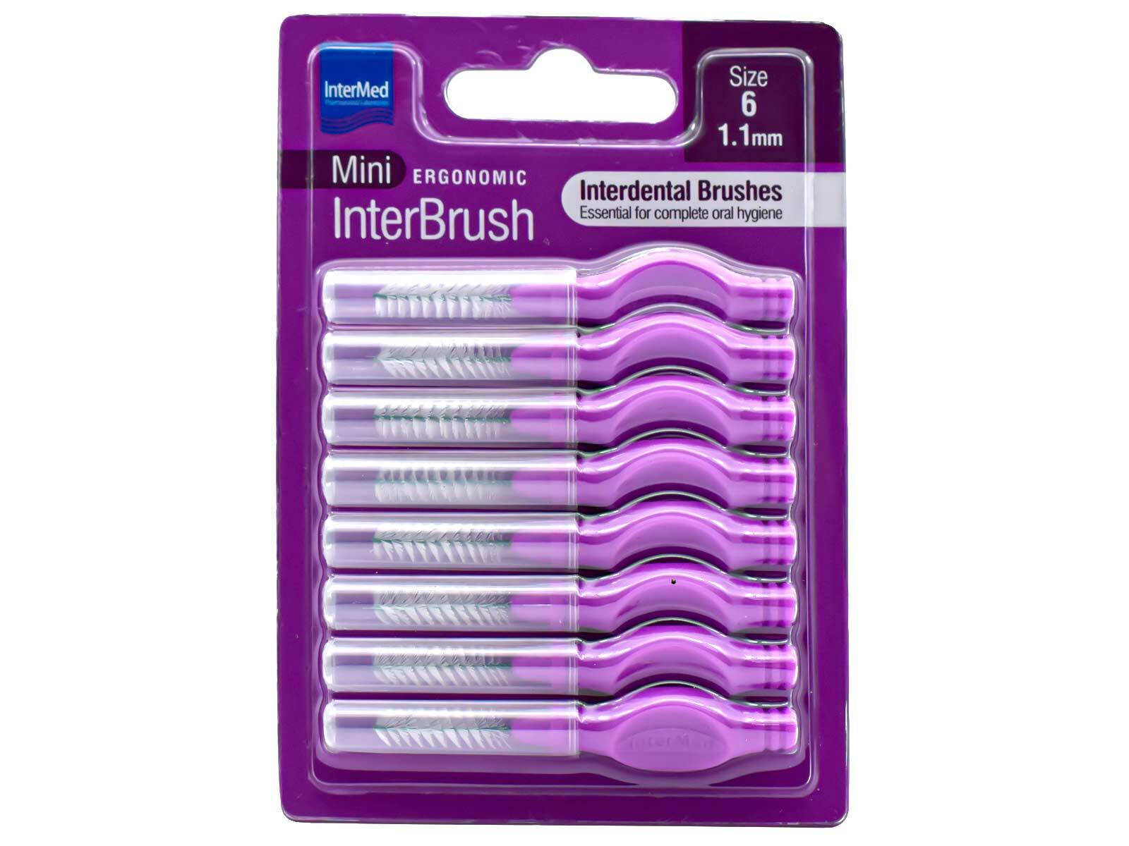 Μεσοδόντια βουρτσάκια της εταιρείας Intermed σε μωβ χρώμα και προσβασιμότητα 1.1mm, τα οποία είναι σχεδιασμένα ώστε να βοηθούν στον καλύτερο και ευκολότερο καθαρισμό των στενών περιοχών ανάμεσα στα δόντια, εκεί όπου οι απλές οδοντόβουρτσες δεν μπορούν να φτάσουν αποτελεσματικά, ενώ είναι ηπιότερα για τα ούλα απ’ ότι το οδοντικό νήμα. Επιπλέον, διαθέτουν λαβή για μεγαλύτερη εργονομία κατά τη χρήση και ευκολότερη πρόσβαση στα πίσω δόντια.